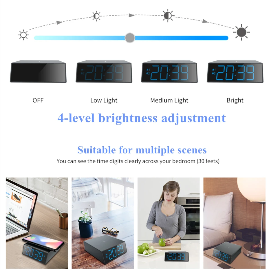 Best . (0% Off) Buy Electronic alarm clock wireless charger for s10 s10e Bedside snooze alarm clock Luminous digital clock Modern decor LED clock Price Online.