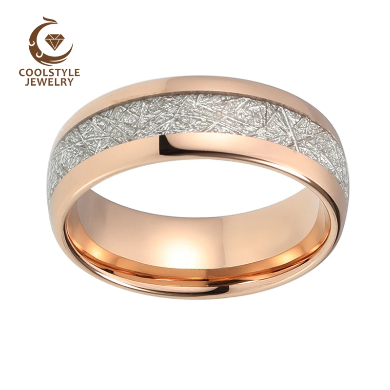 Special Offer Mens Tungsten Wedding Ring Bands Unique Tungsten Carbide Wedding Band Rose Gold Color Plated Imitated Silver Meteorite Inlay Discount 0% Today!