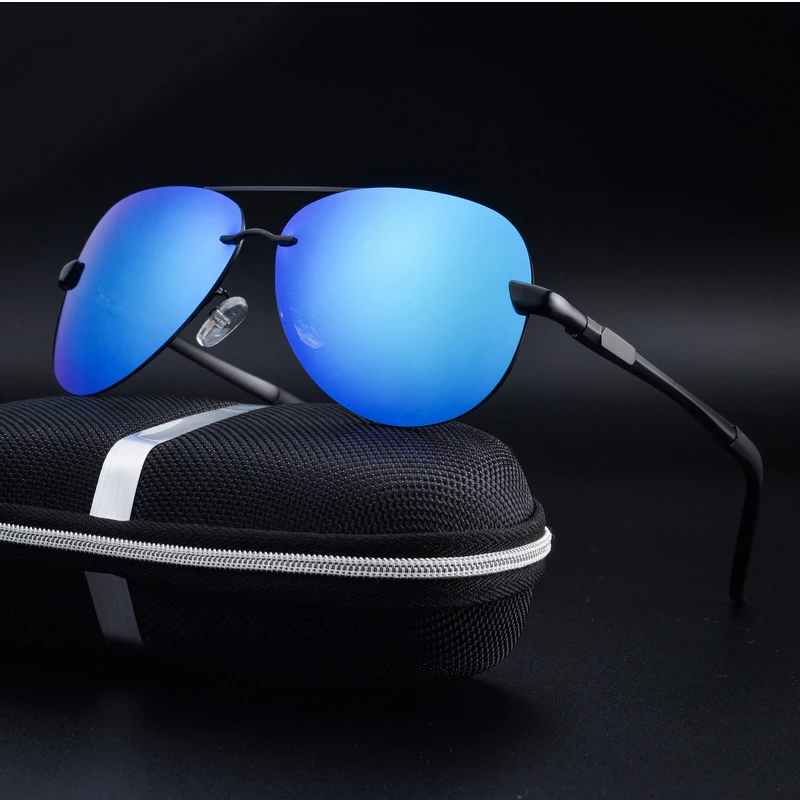 Special Offer Rimless Polarized Driving Sunglasses Meatl Frame Blue Mirror UV400 Sunglasses For Men With Box Discount 12% Today!