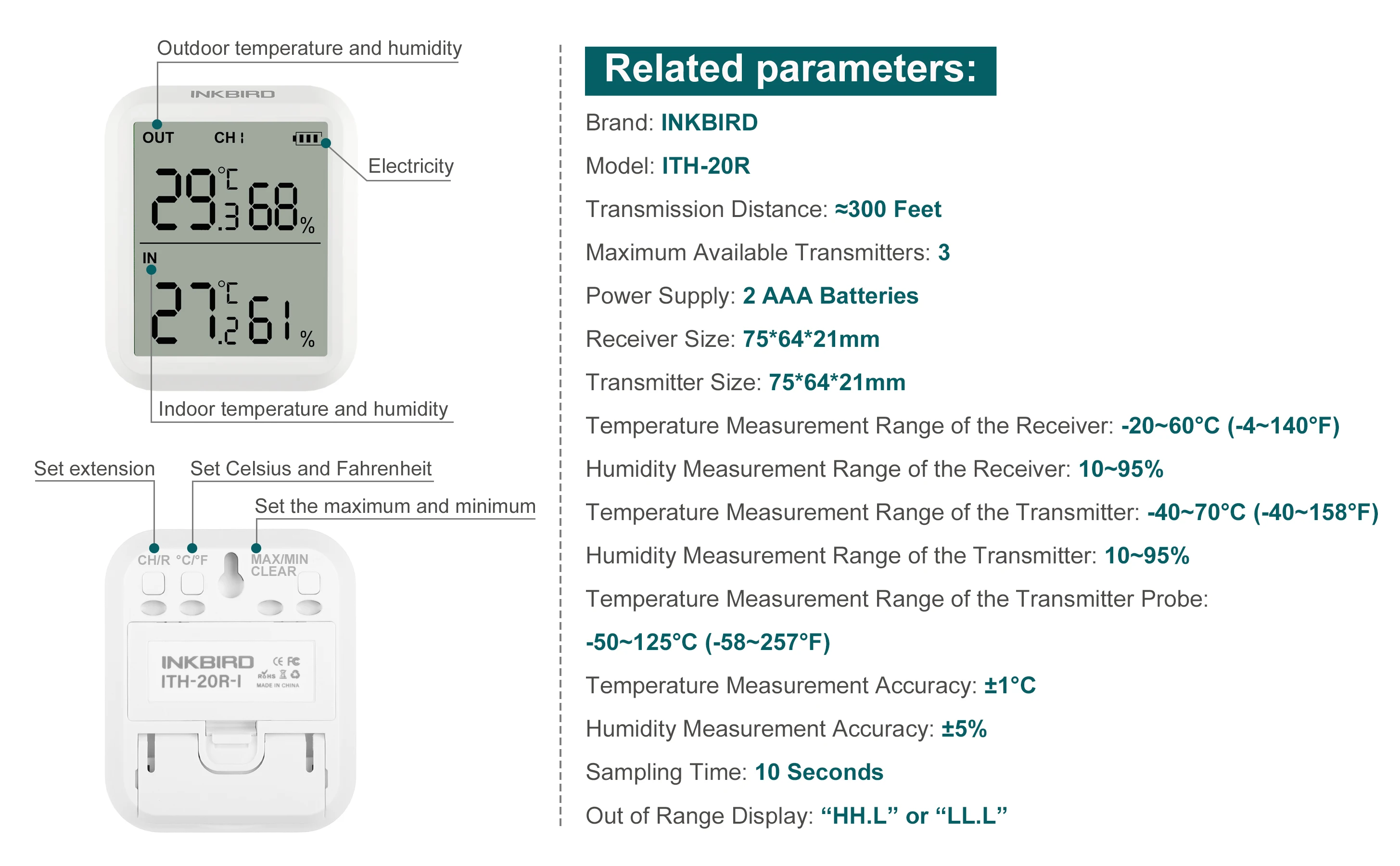 Special Offer Inkbird ITH 20R Digital Hygrometer Indoor Thermometer Humidity Gauge with 1Transmitter Accurate Temperature Aquarium Room Garage Discount 15% Today!