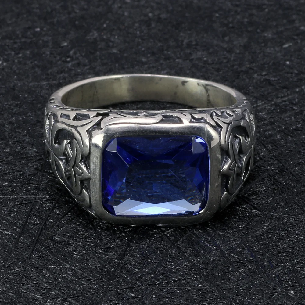 Special Offer Real Pure 925 Sterling Silver Rings For Men Blue Natural Crystal Stone Mens Ring Vintage Hollow Engraved Flower Fine Jewelry Discount 20% Today!