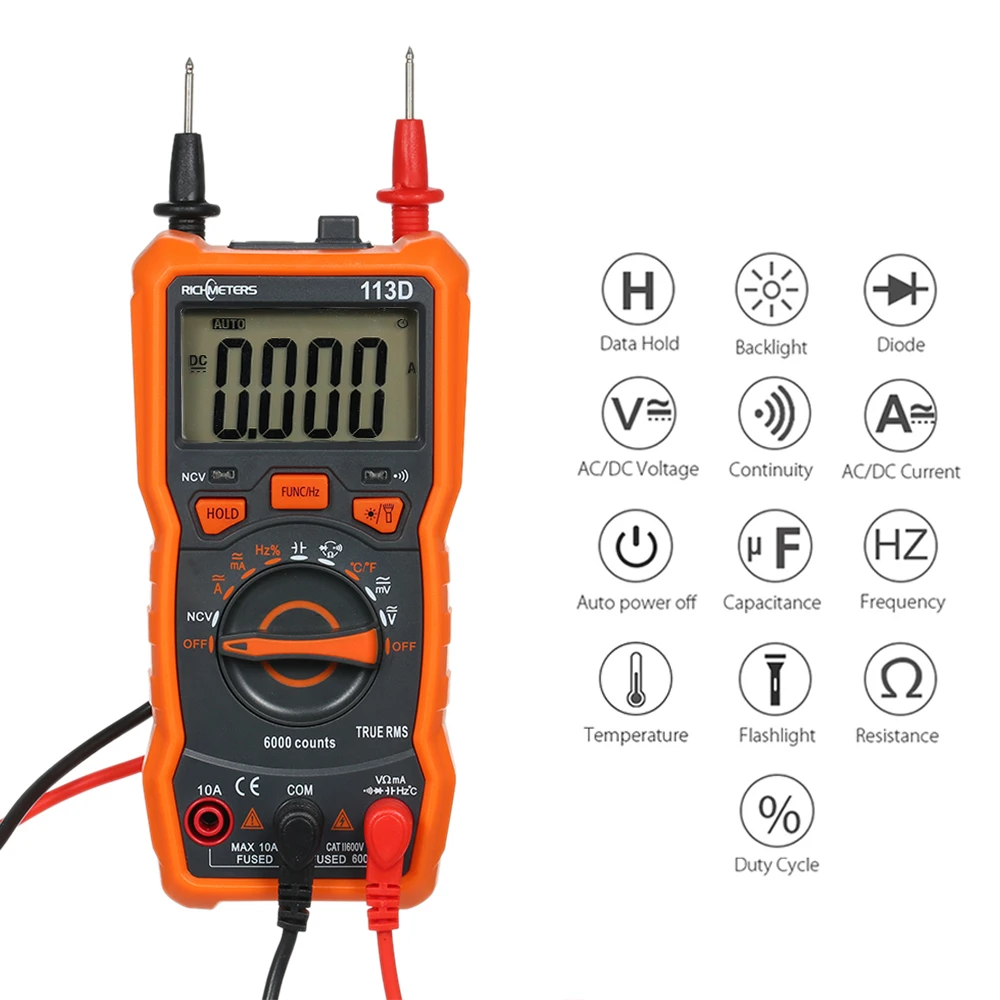Special Offer RICHMETERS 113D NCV Digital Multimeter 6000 counts Auto Ranging AC DC voltage meter Flash light Back light Large Screen 113A Discount 30% Today!