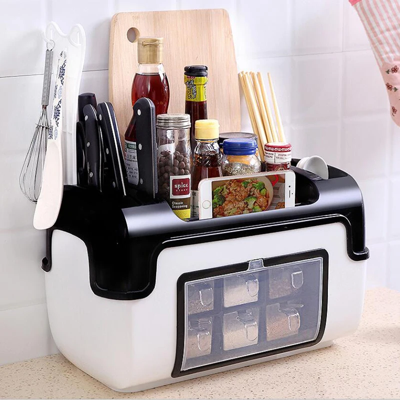 Best . (38% Off) Buy Home kitchen seasoning box set combination knife stand kitchen supplies storage Multi function Spice jarRack Cheap Online.