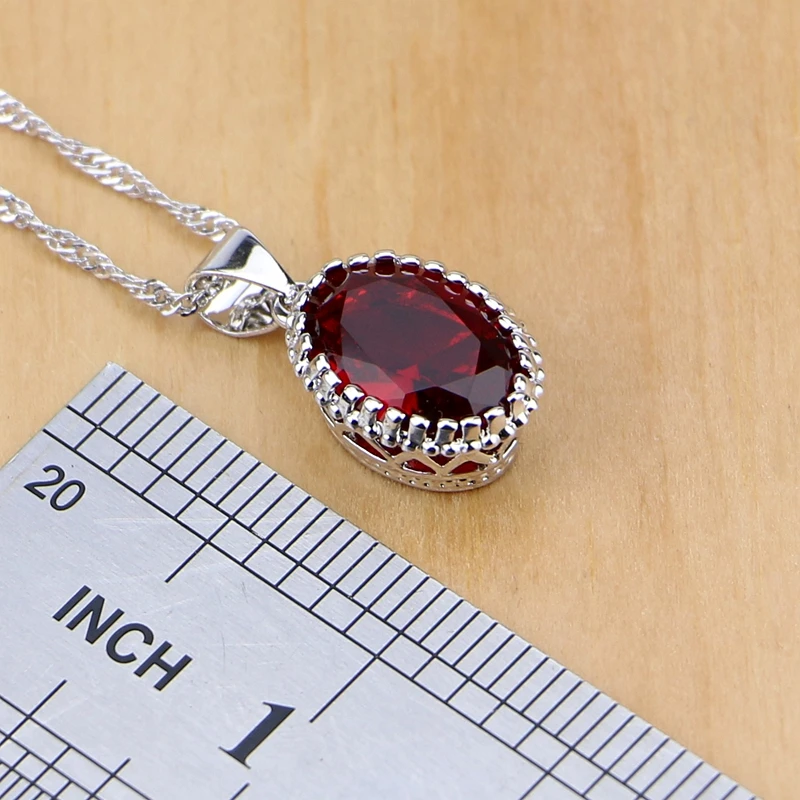 Special Offer Natural 925 Sterling Silver Jewelry Red Birthstone Charm Jewelry Sets Women Earrings Pendant Necklace Ring Bracelets T055 Discount 48% Today!