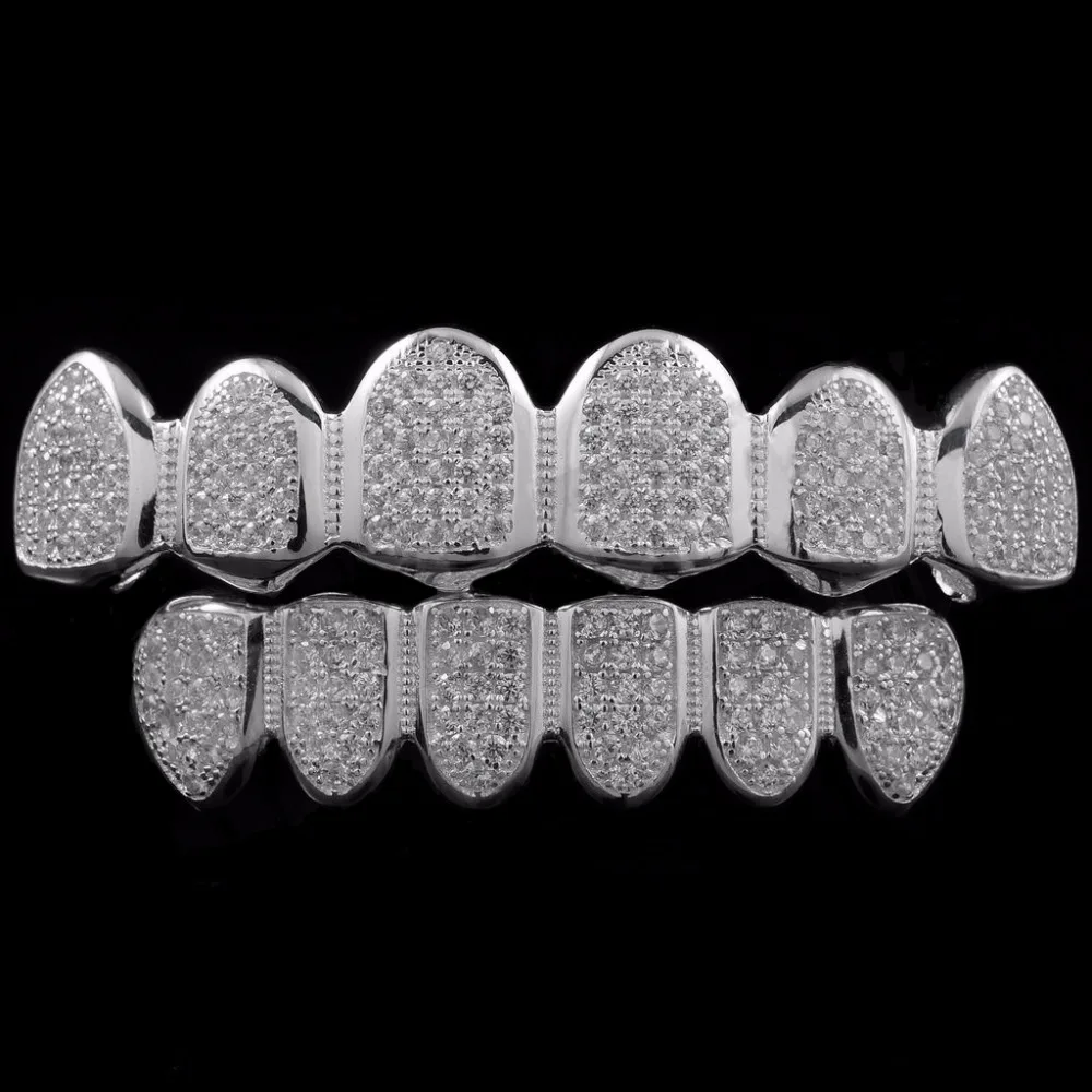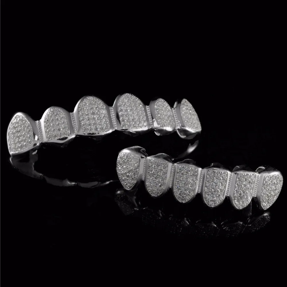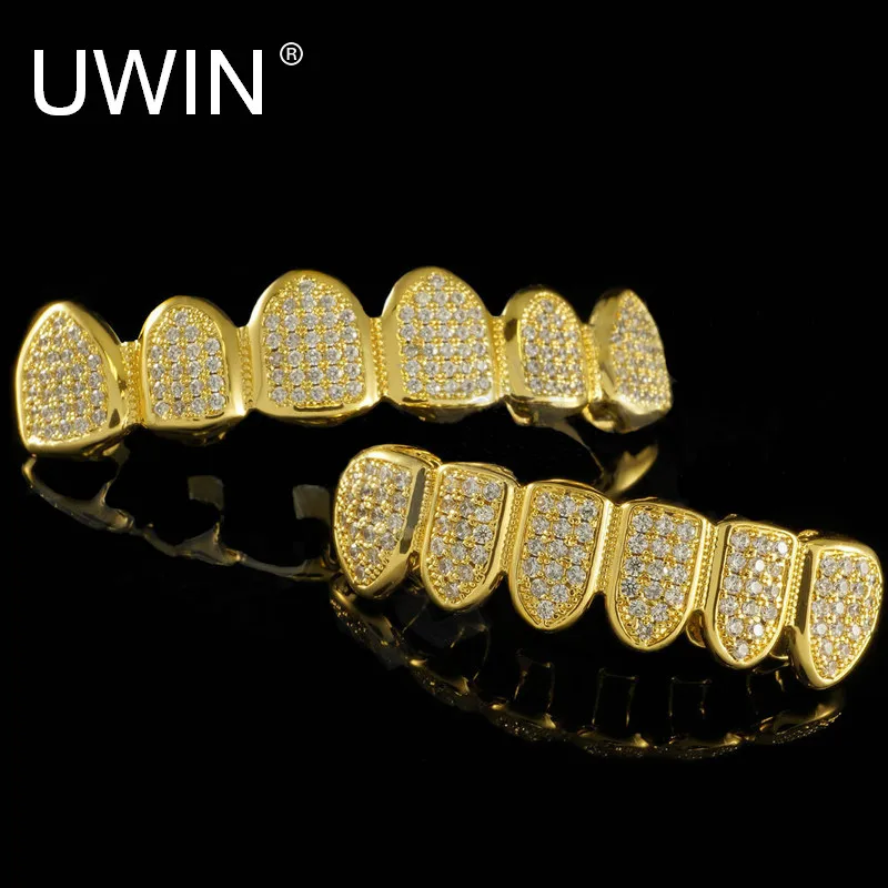 Special Offer UWIN New Custom Fit Silver Gold Color All Iced Out Luxury AAA Zircon Rhinestone Top Bottom Gold Grills set Hop HIP teeth Gift Discount 10% Today!
