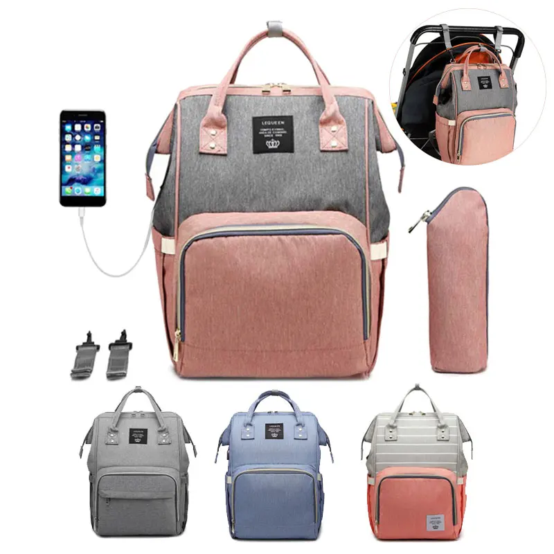 Special Offer Lequeen USB Diaper Bag Backpack Baby Bags Nursing Care Maternity Bag USB Diaper Organizer Waterproof Mummy Bag Backpack for Mom Discount 20% Today!