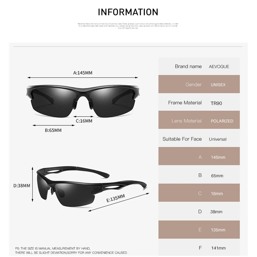 Special Offer AEVOGUE TR Polarized Sunglasses Men Half Frame Plastic Titanium Frame Brand Designer Goggle Sun Glasses UV400 AE0746 Discount 45% Today!