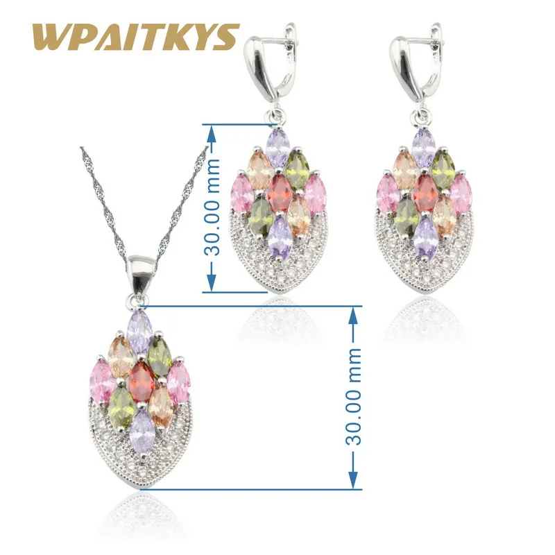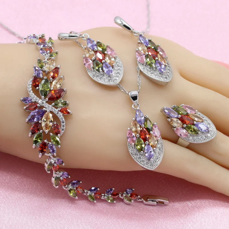 Best . (45% Off) Buy Exquisite MultiColor Cubic Zirconia 925 Silver Jewelry Sets For Women Earrings Necklace Pendant Ring Bracelet Free Gift Boxs Price Online.