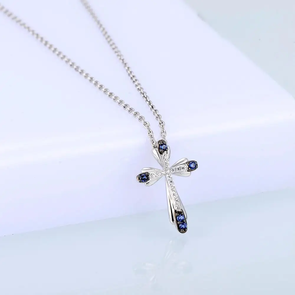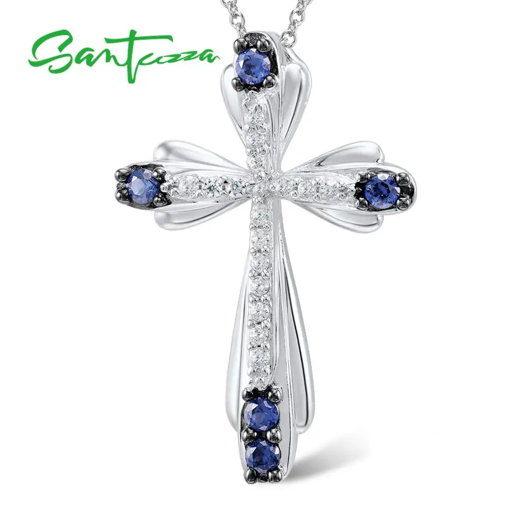 Special Offer SANTUZZA Silver Pendant For Women Genuine 925 Sterling Silver Elegant Blue Cross Fit For Necklace Delicate Fashion Jewerly Discount 49% Today!
