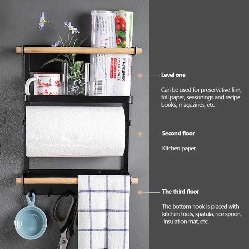 Best . (5% Off) Buy Magnetic Adsorption Refrigerator Side Rack Wall mounted Multi function Storage Holder Kitchen Paper Towel Shelf Rack Organizer Price Online.