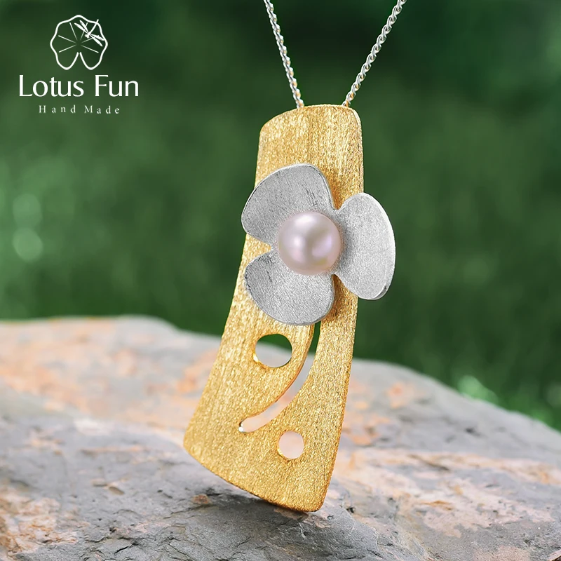 Special Offer Lotus Fun Real 925 Sterling Silver Natural Pearl 18K Gold Fine Jewelry Fresh Clover Flower Pendant without Necklace for Women Discount 54% Today!
