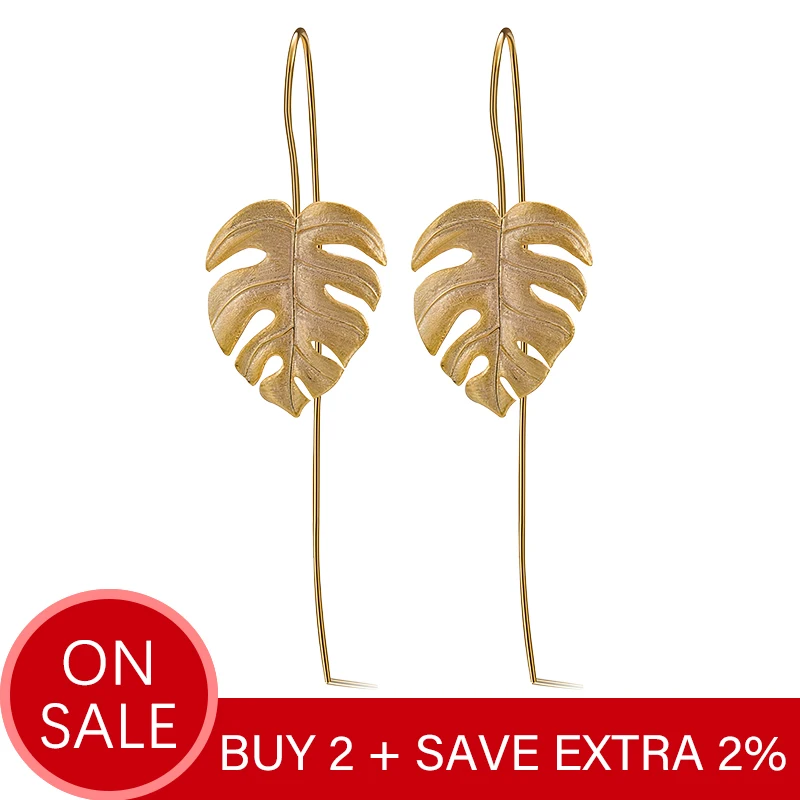 Special Offer Lotus Fun Real 925 Sterling Silver Creative Handmade Design Fine Jewelry 18K Gold Monstera Leaves Drop Earrings for Women Bijoux Discount 55% Today!