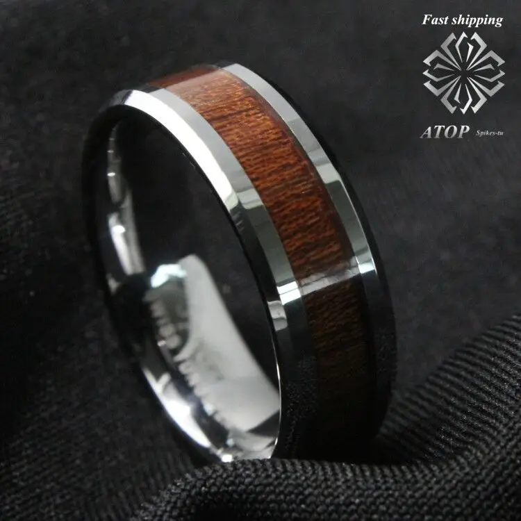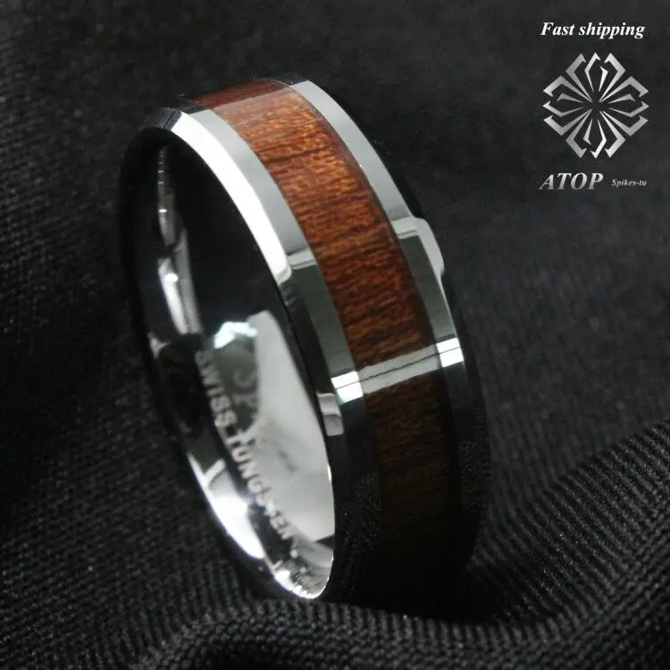 Special Offer 8mm Men s Tungsten ring Carbide Wood Inlay Beveled Wedding Band Ring Free Shipping Discount 0% Today!