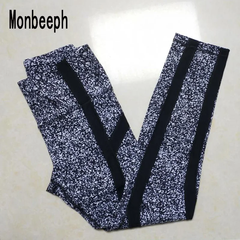 Special Offer Monbeeph 2019 new arrival print and black leggings Stitching stripes women pants pencil pants Discount 0% Today!