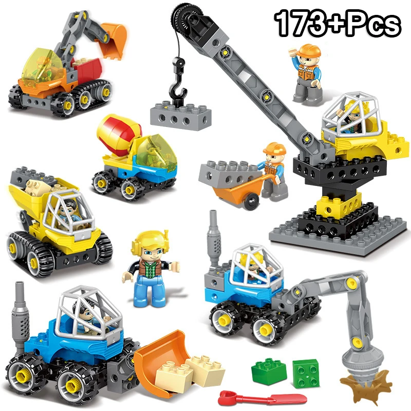 Special Offer 173Pcs DIY Large Particles Engineering Excavator Crane Building Blocks Compatible Brand Duploe City Construction Vehicles Toys Discount 20% Today!