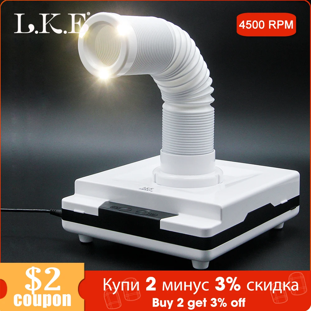 Special Offer 60W LKE Nail dust collector 4500rpm vacuum cleaner for manicures suction dust cleaner retractable elbow nail dust collector Discount 29% Today!