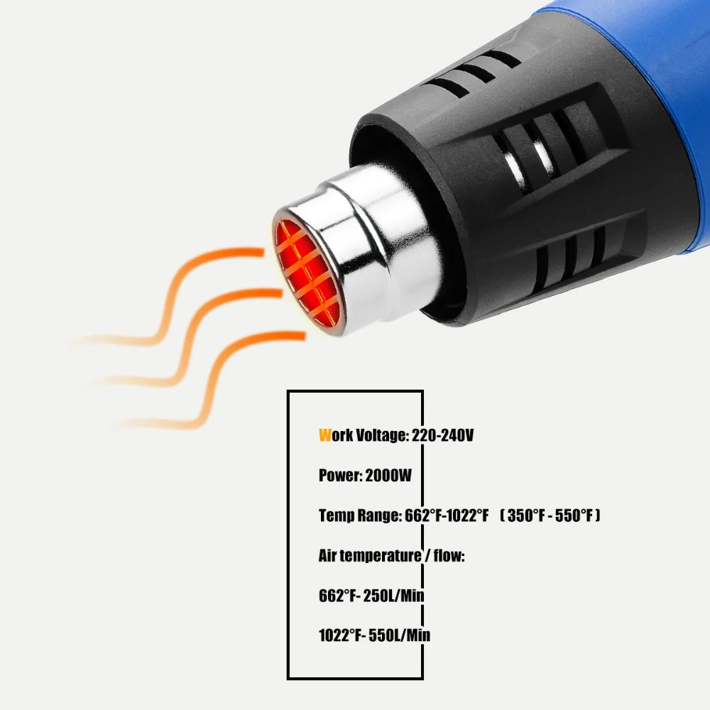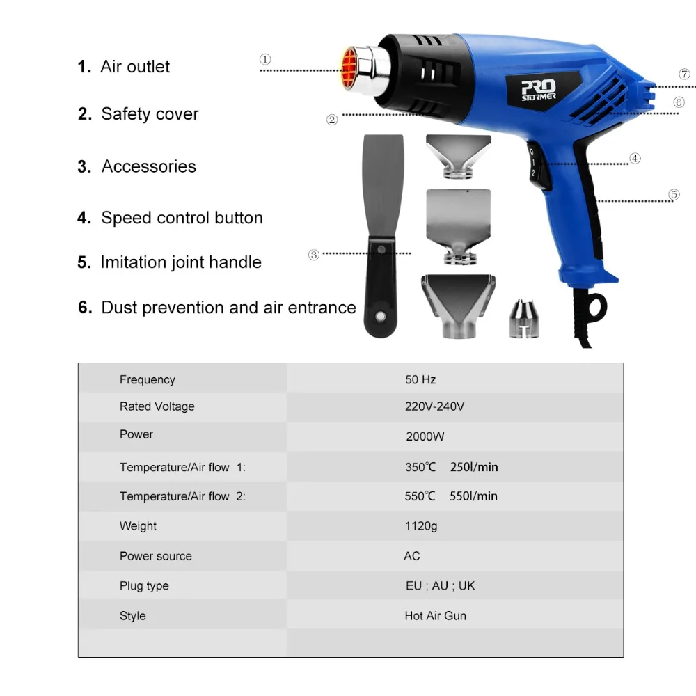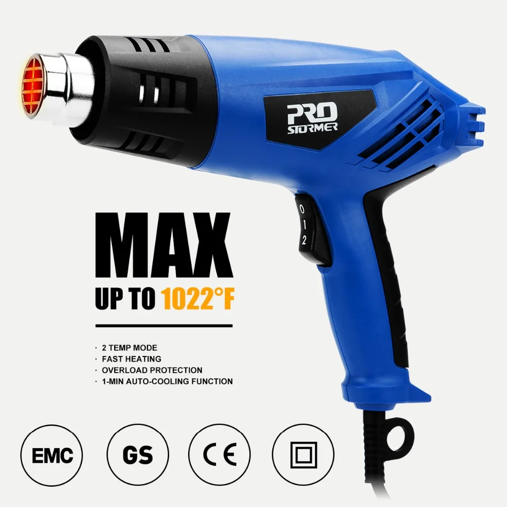 Special Offer PROSTORMER 2000W Heat Gun 220V Electric Heating Gun Hot Air Industrial Tool Dual Temperature Building Temperature with 4 Nozzle Discount 30% Today!
