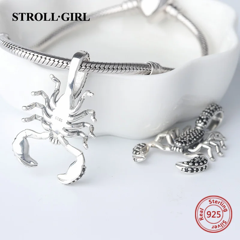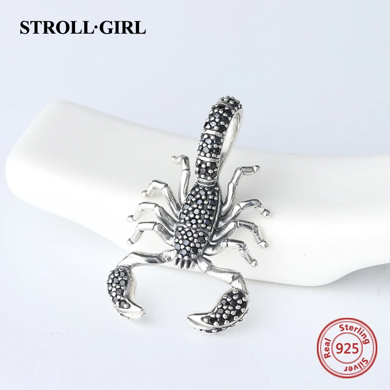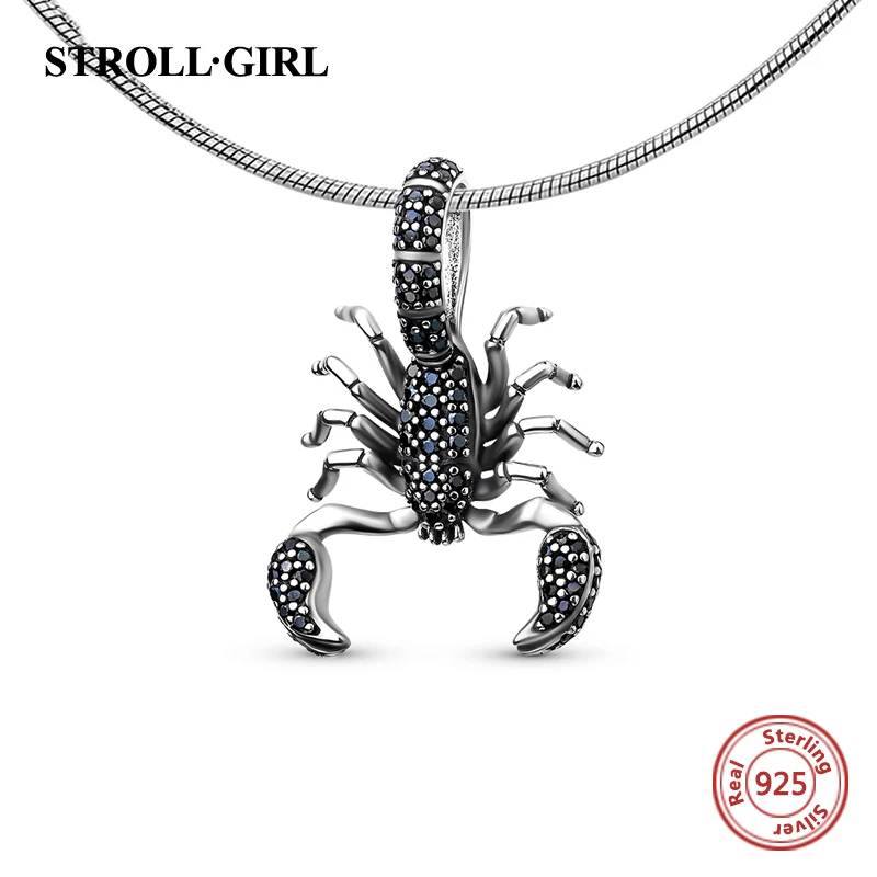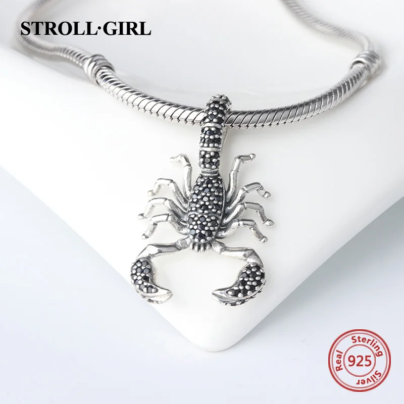 Special Offer StrollGirl animal Black Scorpion Pendant with black charm 925 silver sterling beads fit original Pandora bracelets jewelry gift Discount 30% Today!