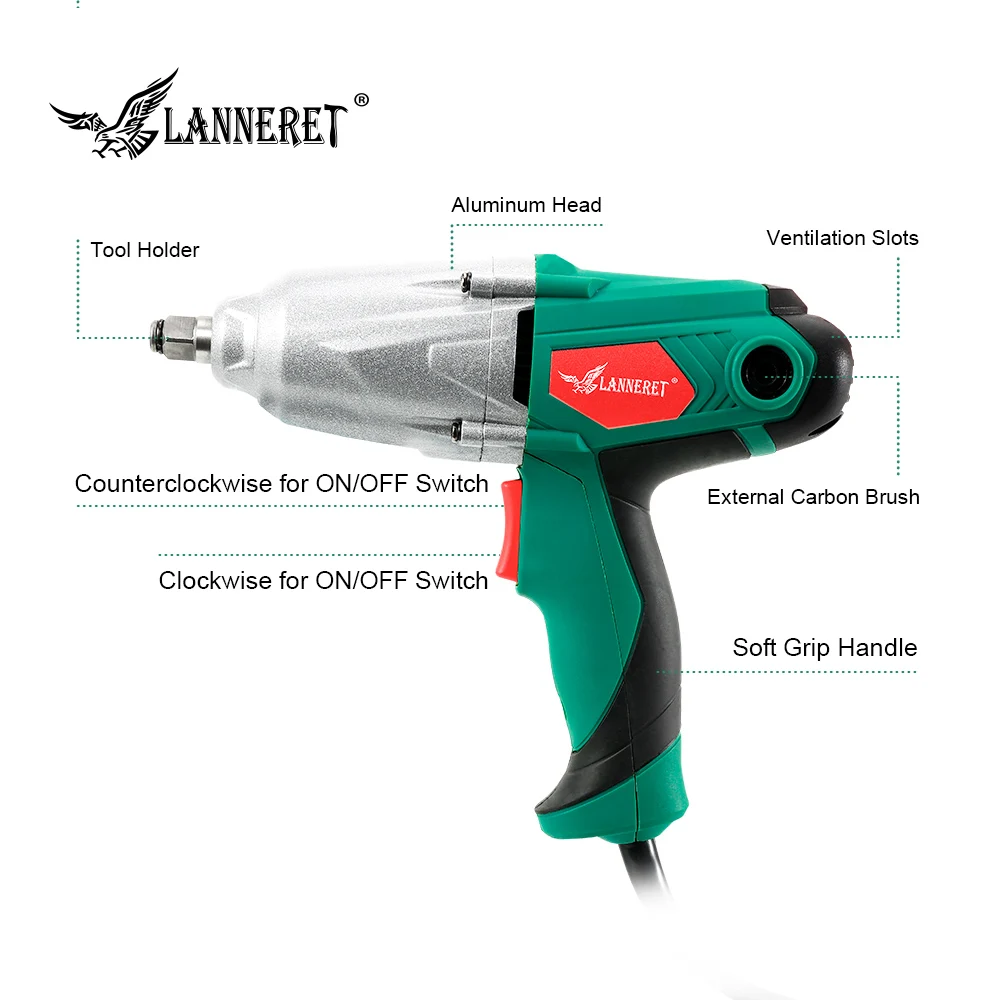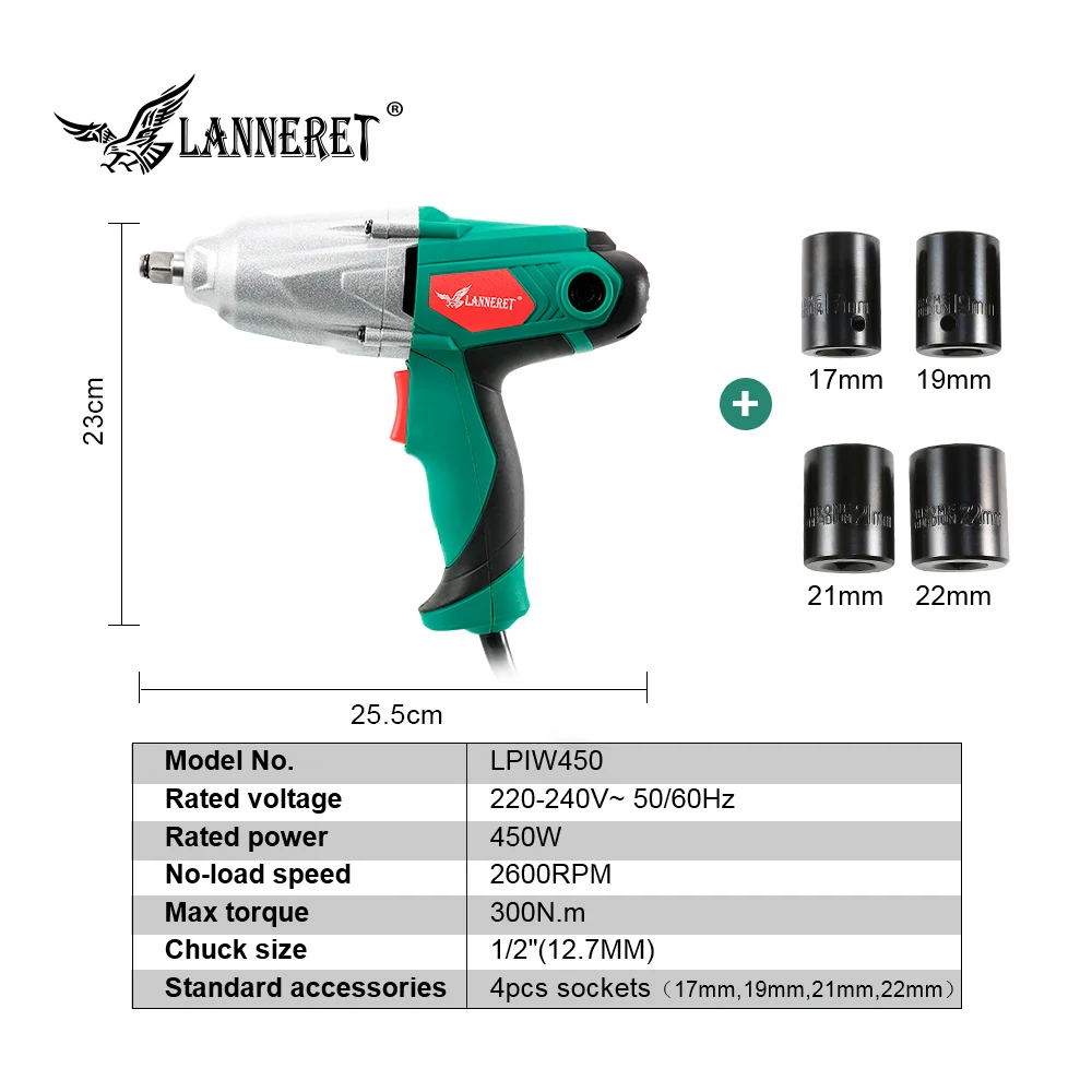 Special Offer LANNERET 450W Electric Impact Wrench 300Nm Max Torque 1 2 inch Car Socket Electric Wrench Changing Tire Tool Discount 44% Today!
