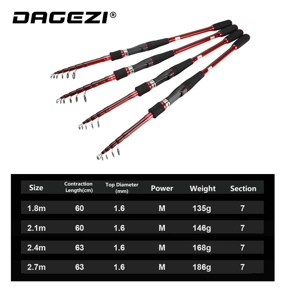 Special Offer DAGEZI Carbon Telescopic Fishing Rod 1.8 2.7M Spinning Casting Rod M Power 7 Sections Lure Rod For Saltwater Fishing Travel Rod Discount 45% Today!