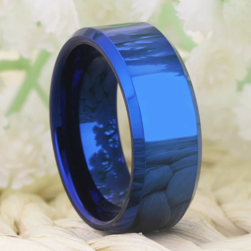 Special Offer Drop Shipping Women s Wedding Band Ring Men Classic Blue Bevel Tungsten Ring Engagement Party Ring Gift Present for Women men Discount 10% Today!