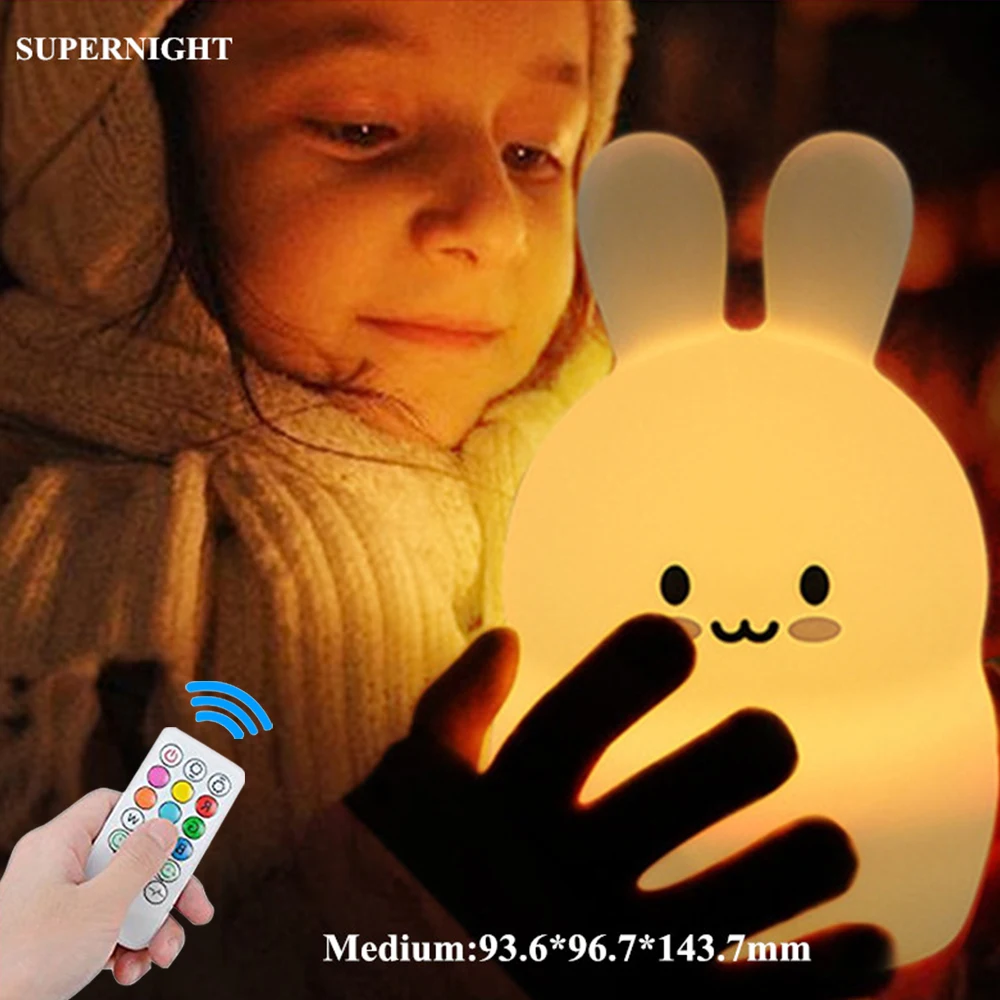 Special Offer Rabbit LED Night Light Remote Control Dimmable Timer Touch Sensor 9 Colors USB Charging Silicone Bunny Bedside Lamp for Children Discount 27% Today!