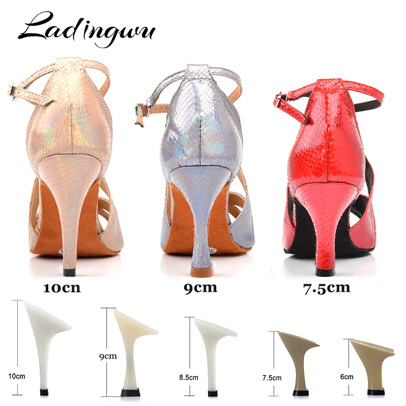 Special Offer Ladingwu New Brand Dance Shoes Woman Latin Unique Snake texture PU Salsa Dance Shoes 10cm Heels Tango Professional perform Shoes Discount 29% Today!
