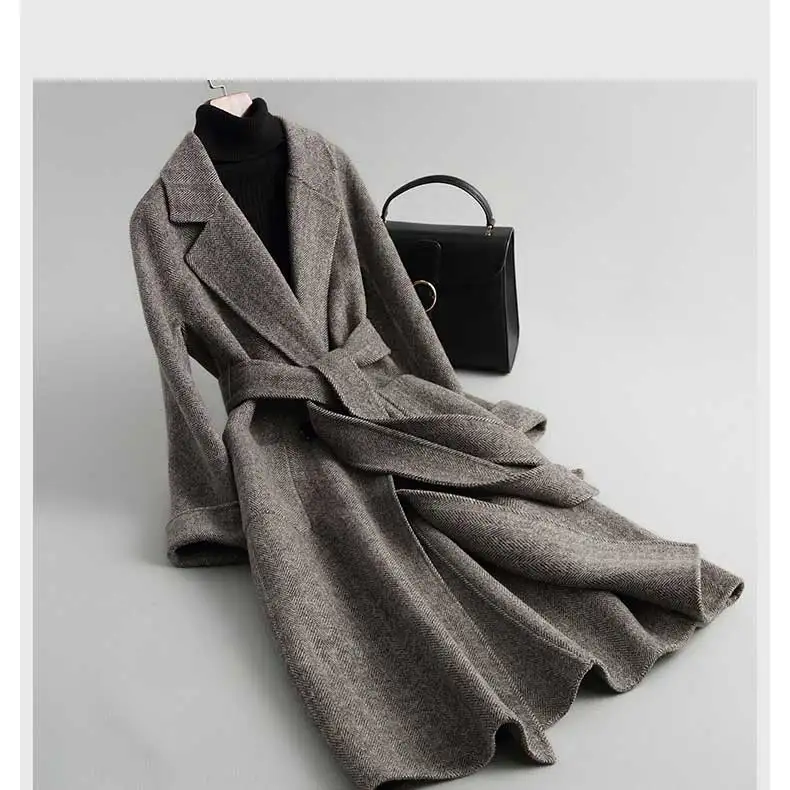 Special Offer 2019 Women Woolen Coat Elegant Turn Down Collar Women Long Woolen Coat Dark Gray Design Winter Warm Coat Casaco Feminino Discount 30% Today!