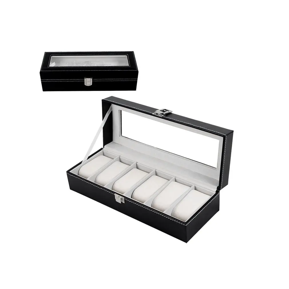 Special Offer 6 Grids Watch Box Black PU Leather Refinement Slots Wrist Watches Organizer Container Jewelry Display Case Storage Holder 2019 Discount 30% Today!