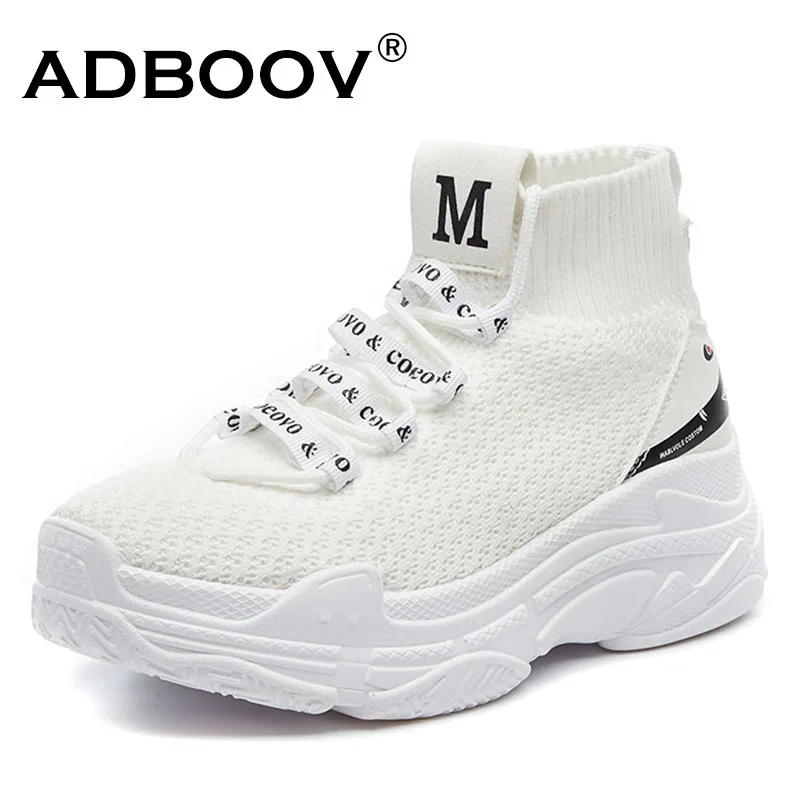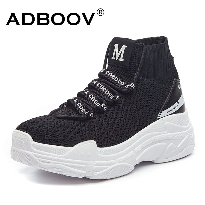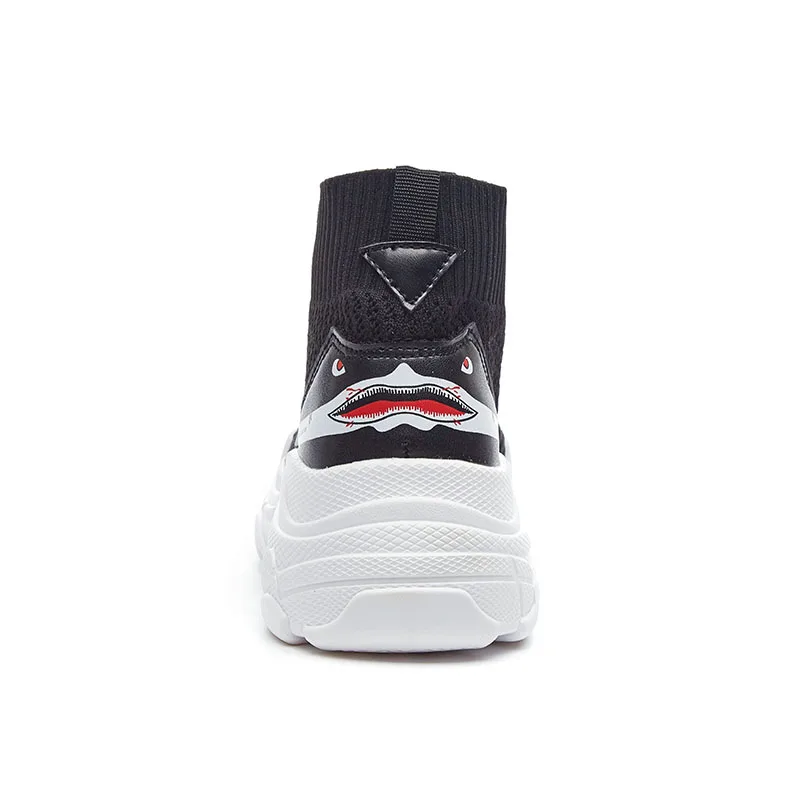 Special Offer ADBOOV High Top Sneakers Men Unisex Knit Upper Breathable Shoes Fashion Shark Logo Couple Black White Shoes Shoes Casual Discount 40% Today!