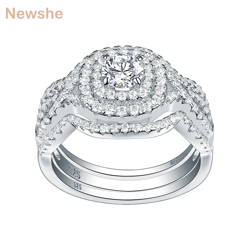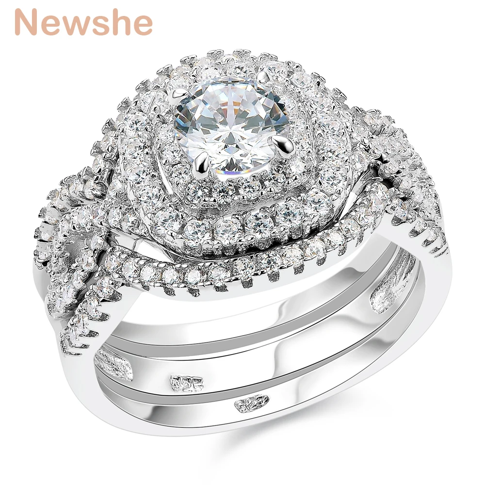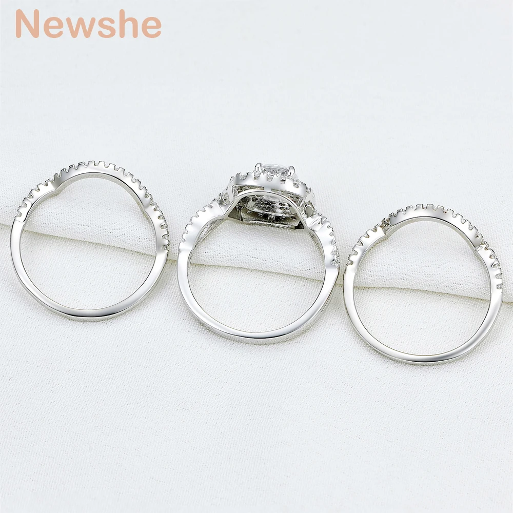 Special Offer Newshe 3Pcs 925 Sterling Silver Wedding Rings For Women 2.1Ct AAA CZ Engagement Ring Set Classic Jewelry Size 5 12 Discount 12% Today!