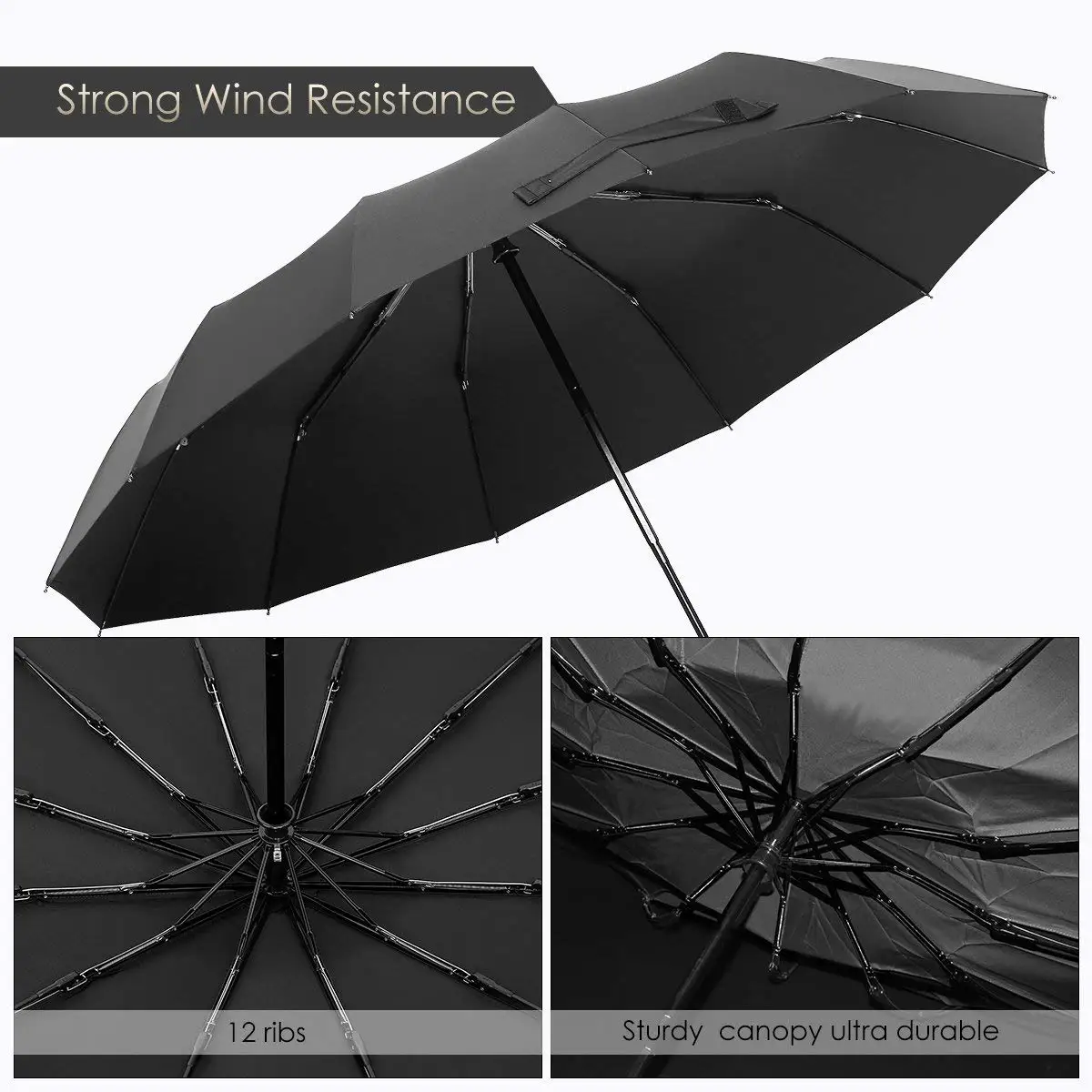 Special Offer Promotion! 12 Ribs Windproof Travel Umbrella With Teflon Canopy, Lengthened Handle With Auto Open Close Button, Compact Protec Discount 24% Today!