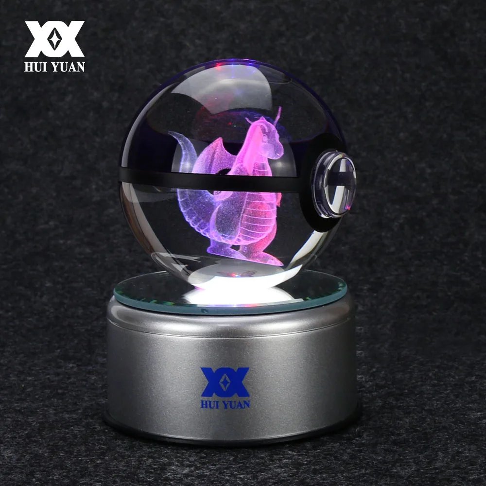 Special Offer 8 cm Dragonite 3D Crystal Ball Pokemon Go Light Glass Ball Engraving Round With Black Line Ball LED Colorful Base Child s Gift Discount 30% Today!