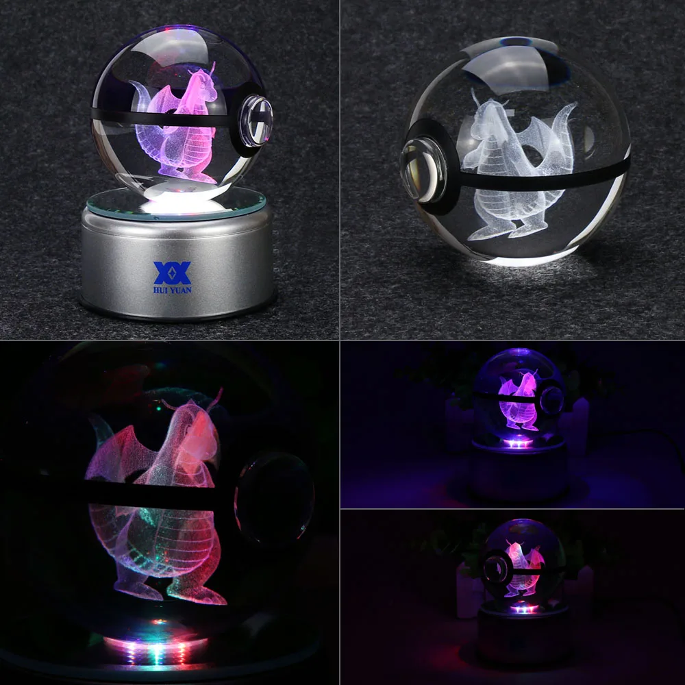 Best . (30% Off) Buy 8 cm Dragonite 3D Crystal Ball Pokemon Go Light Glass Ball Engraving Round With Black Line Ball LED Colorful Base Child s Gift Price Online.