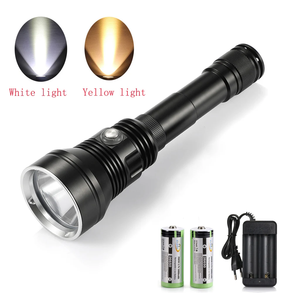 Best . (30% Off) Buy new Super Brightness XHP70 chip Yellow White Light Waterproof 6000 Lumens Diving LED Flashlight Underwater 100M Tactical Torch Price Online.