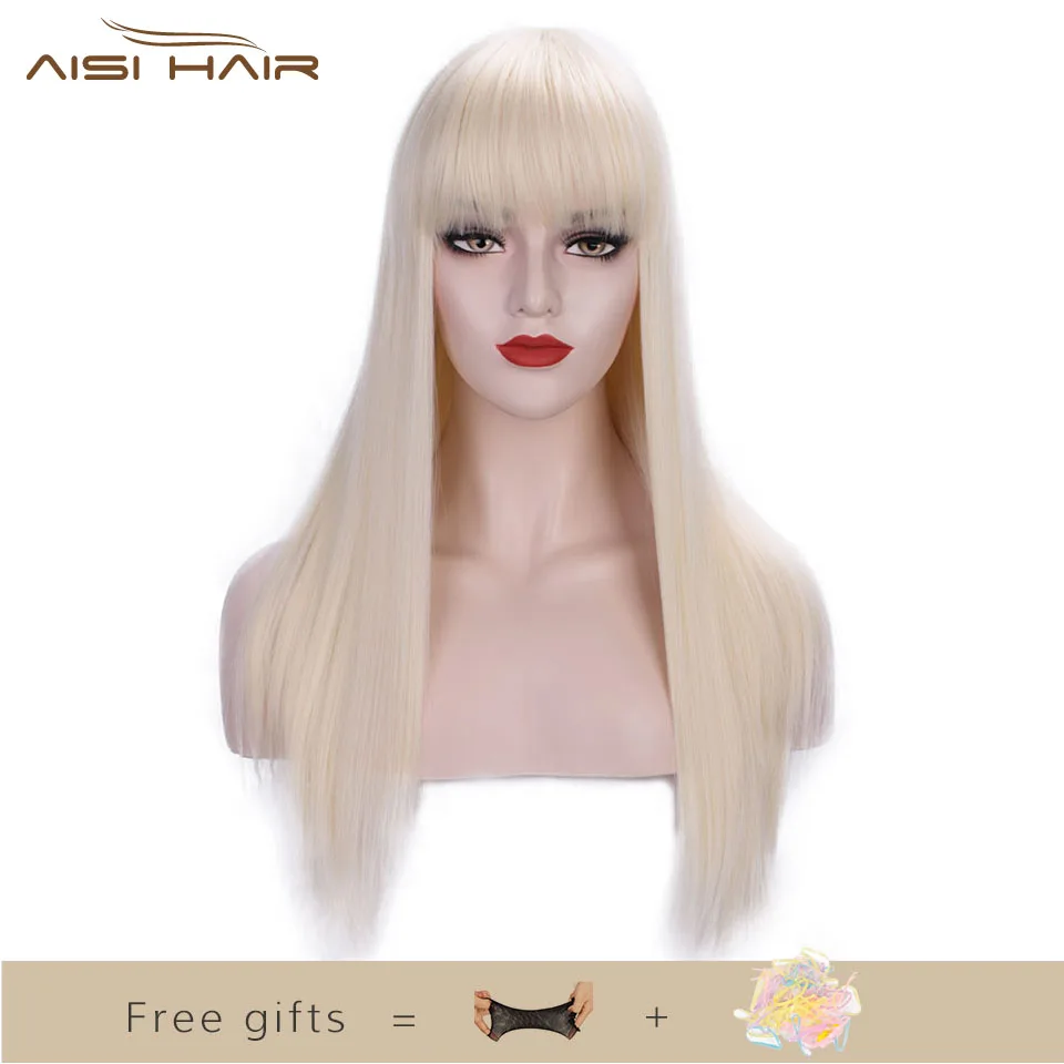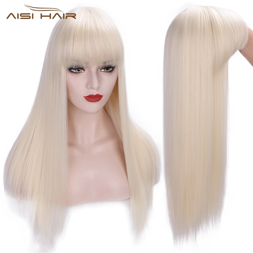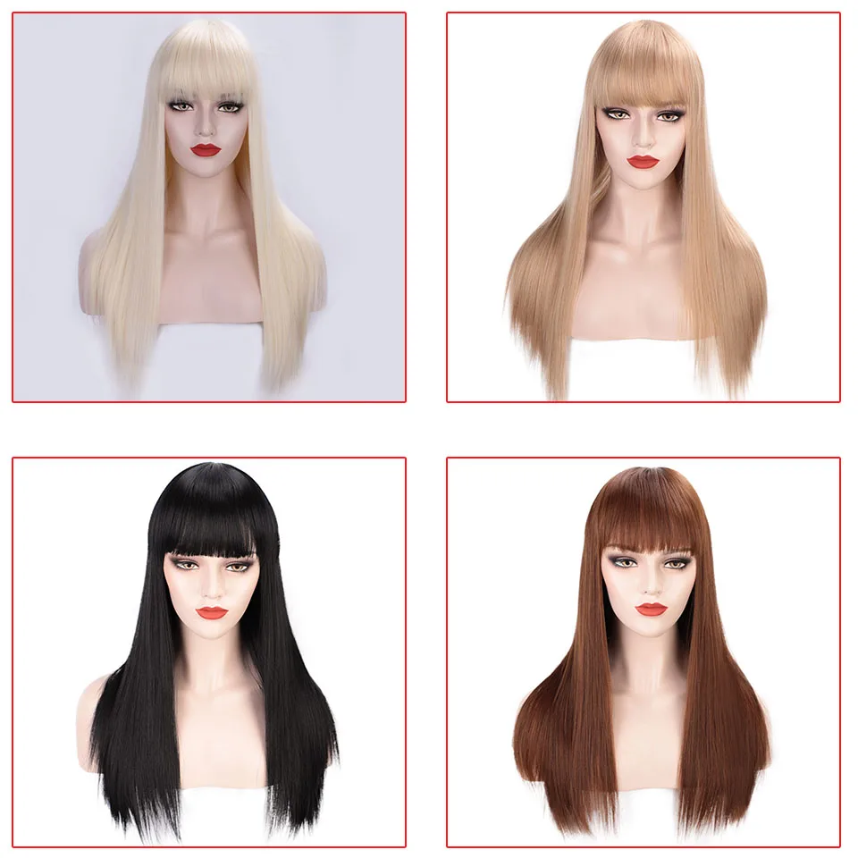Special Offer 22 Long Straight 613 Blonde Synthetic Wigs With Bangs for Women Cosplay Hair wig Heat Resistant Black Hairpiece I s a wig Discount 40% Today!
