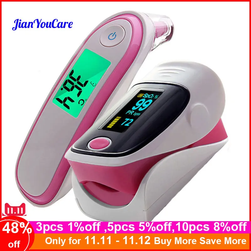 Special Offer Medical Fingertip Pulse Oximeter Ear forhead Infrared Thermometer Digital portable Family Health Care Spo2 PR oximetro de pulso Discount 44% Today!