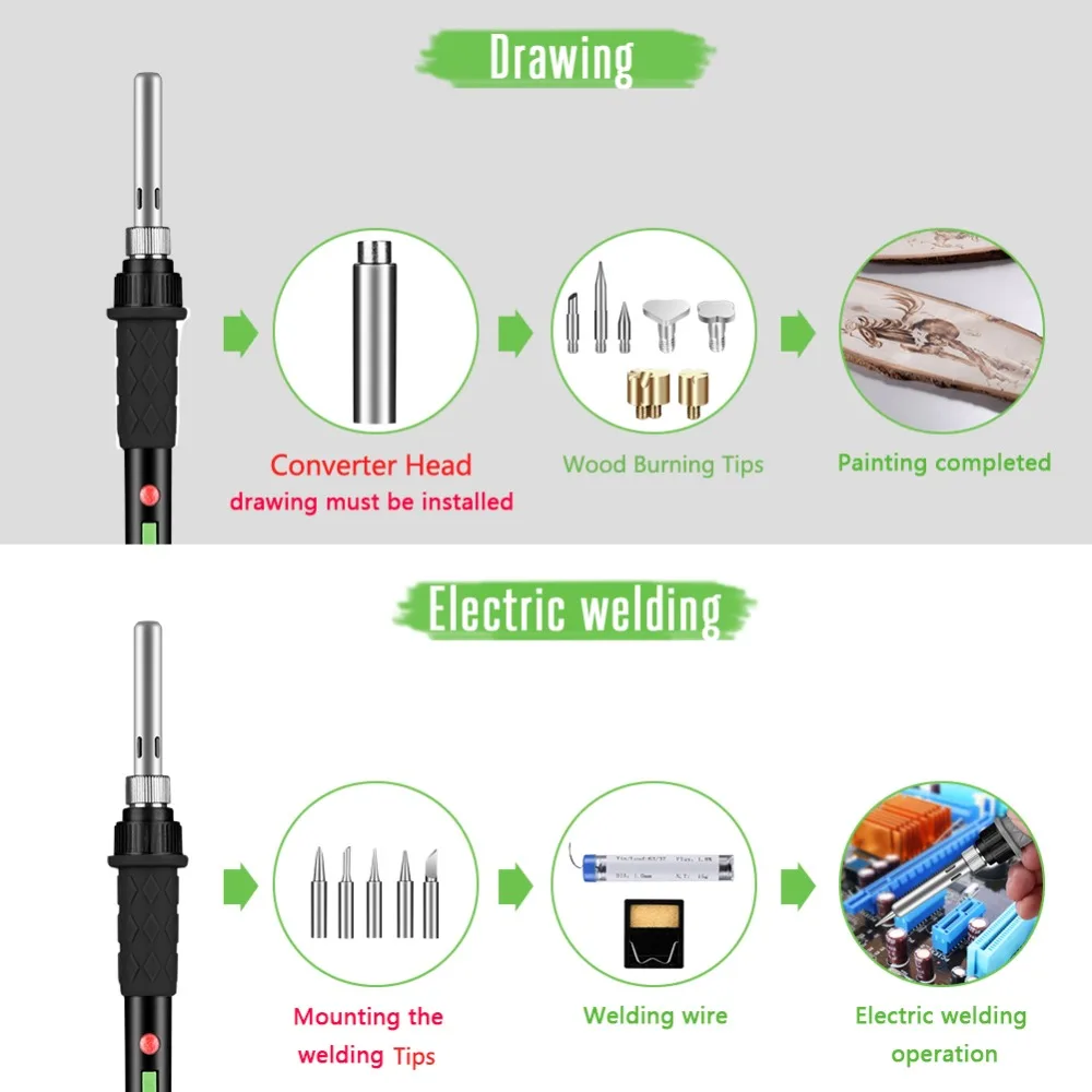 Best . (50% Off) Buy GEYOTAR Wood Burning Kit Carving Pyrography Pen Kit 60W Adjustable Temperature Soldering Iron Welding Wood Embossing Burning set Price Online.