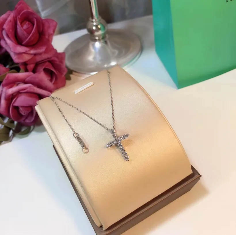 Special Offer TSHOU234 TIFF 925 SILVER Cross zircon sterling silver necklace lady gift clavicle chain Discount 0% Today!
