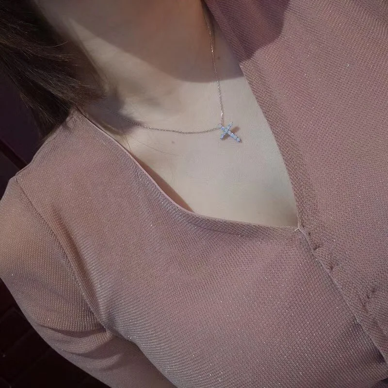 Best . (0% Off) Buy TSHOU234 TIFF 925 SILVER Cross zircon sterling silver necklace lady gift clavicle chain Price Online.