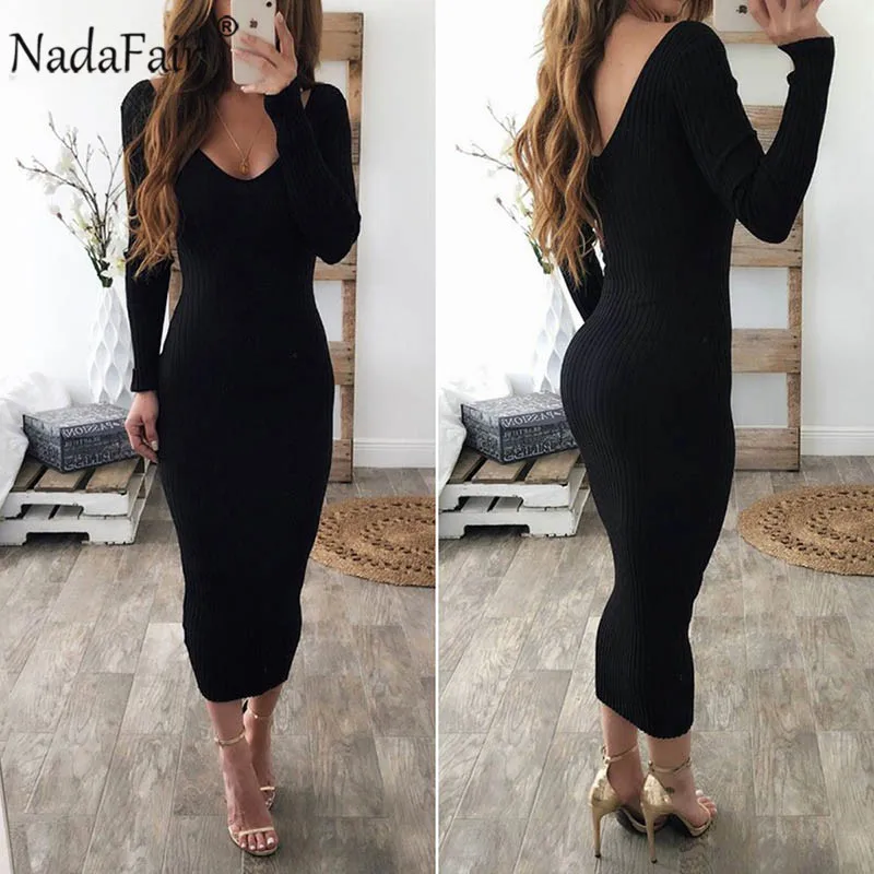 Best . (30% Off) Buy Nadafair Knitted Sweater Dress Women Stretchy Long Sleeve Black White Red Midi Bodycon Knit Winter Dress Price Online.