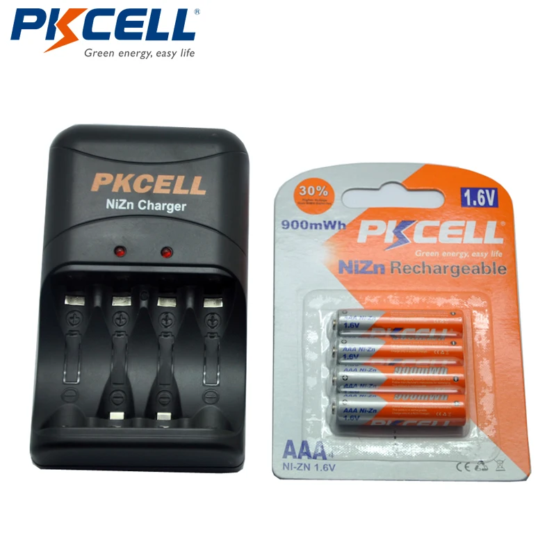 Special Offer PKCELL 4Pcs 1.6V 900mWh Ni Zn AAA Rechargeable Battery + NiZn AA AAA Battery Charger Discount 31% Today!