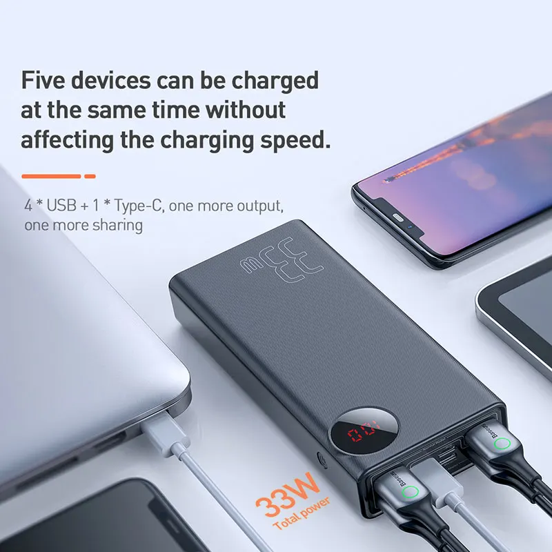 Special Offer Baseus 30000mAh Power Bank Quick Charge 3.0 Portable External Battery Charger Powerbank with QC3.0+PD3.0 Fast Phone Charger Discount 35% Today!