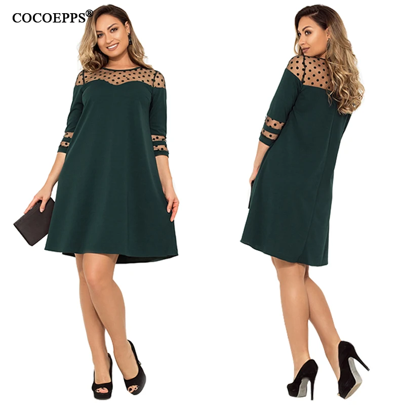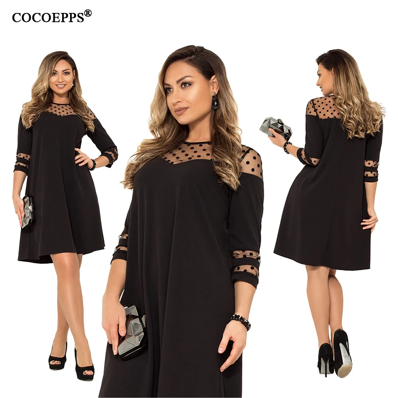 Best . (41% Off) Buy COCOEPPS Big Size Summer Dress Plus Size Autumn Polka dot Mesh Casual vestidos Winter Female Clothes Elegant Party dress women Cheap Online.