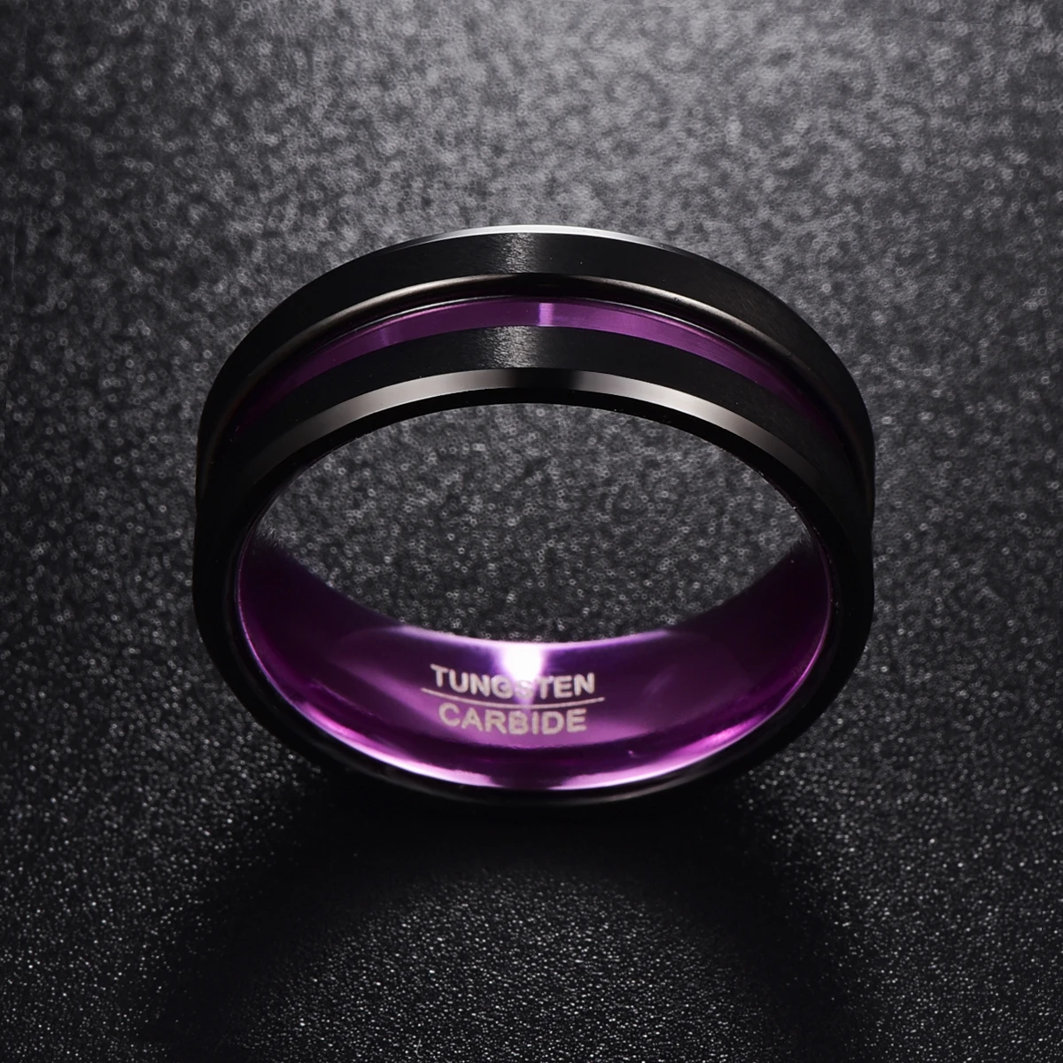 Special Offer Purple Inner Ring Scrub Groove Men Rings Tungsten Carbide Anillos para hombres Male Fashion Jewelry Drop Shipping Discount 45% Today!