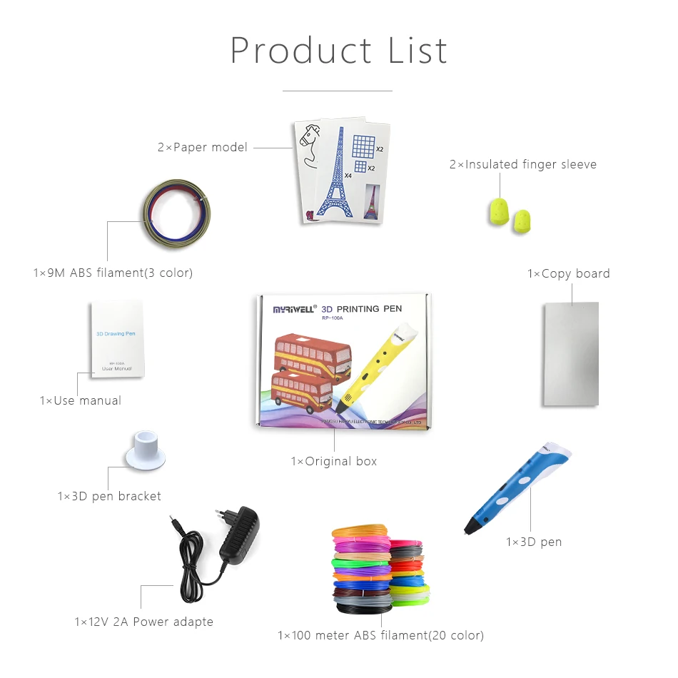 Special Offer 3D Pen Model 3 D Printer Drawing Magic Printing Pens With 100M Plastic ABS Filament School Supplies For Kid Birthday Gifts Discount 48% Today!