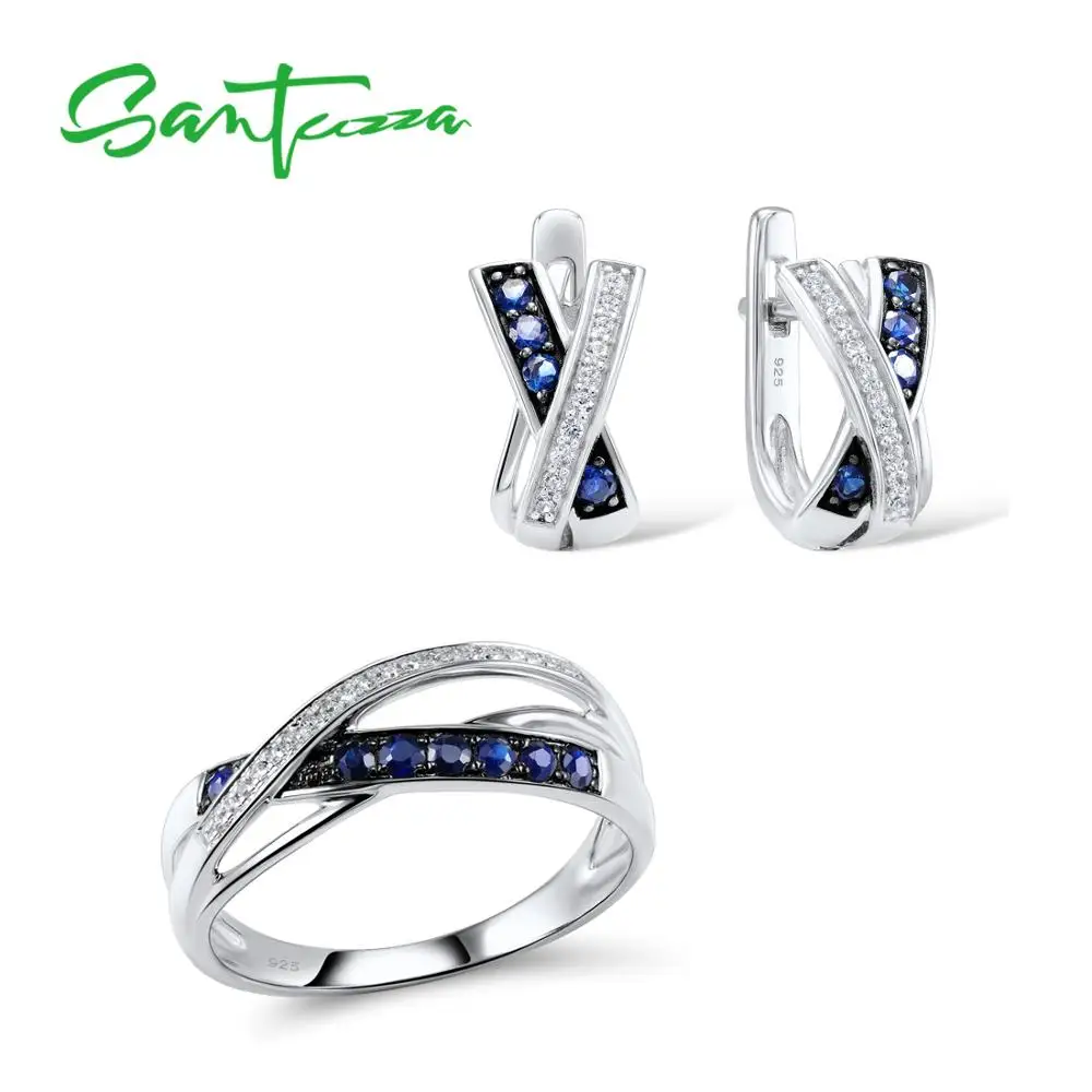 Best . (49% Off) Buy SANTUZZA Silver Jewelry Set For Women Shiny Cubic Zirconia Ring Earrings Set 925 Sterling Silver Wedding Band Fashion Jewelry Cheap Online.