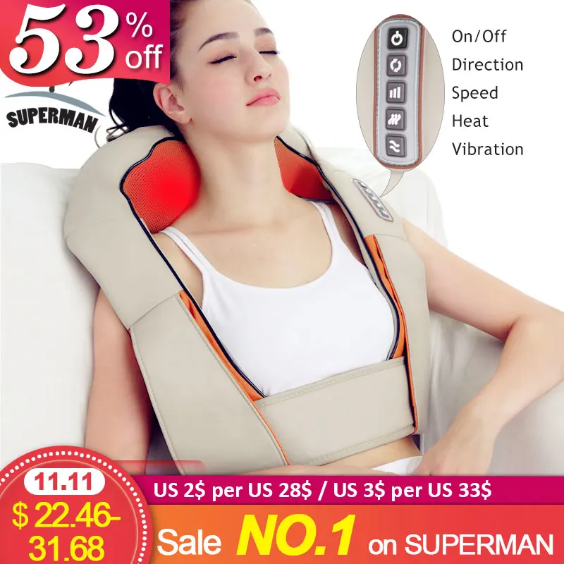 Best . (50% Off) Buy Superman electrical shiatsu massager neck massage device electric vibrating back shoulder belt massages roller machine Cheap Online.