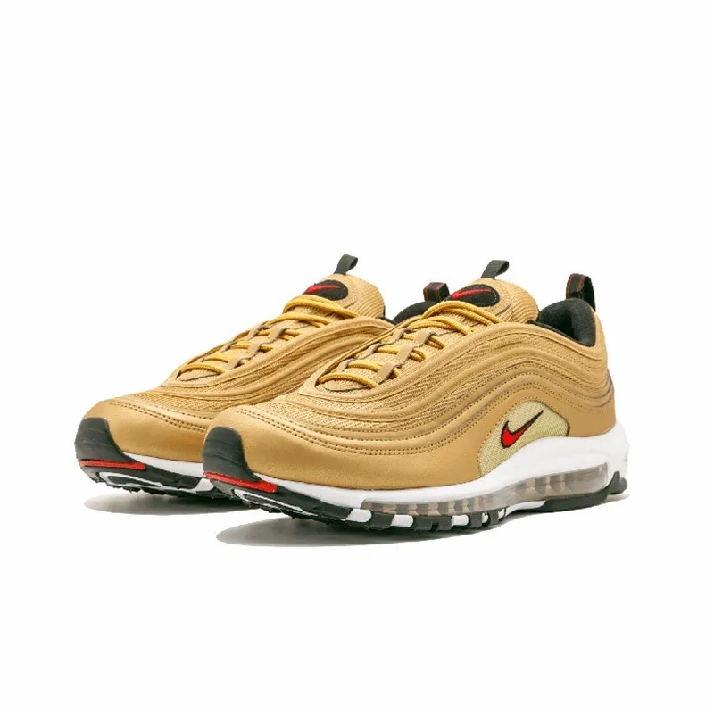 Special Offer Nike Air Max 97 OG QS Men s Breatheable Running Shoes Gold And Silver Bullet Sneakers # 884421 Discount 60% Today!