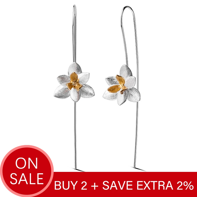 Special Offer Lotus Fun Real 925 Sterling Silver Natural Original Handmade Fine Jewelry Cute Blooming Flower Fashion Drop Earrings for Women Discount 65% Today!